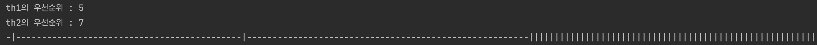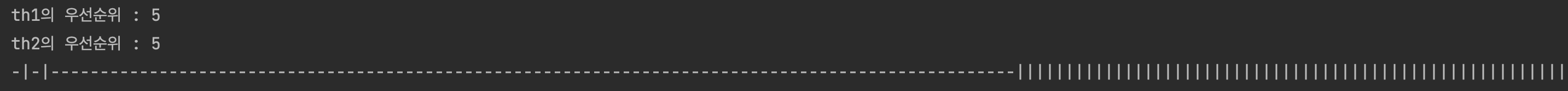 h1과 th2 모두 main메서드에서 생성하였기때문에 main메서드를 실행하는 쓰레드의 우선순위인 5를 상속받았다.
