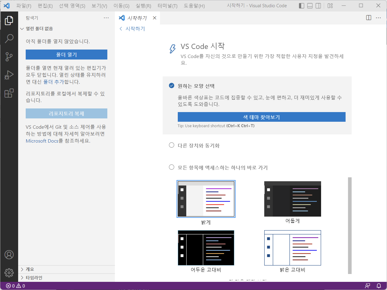 - 비주얼 스튜디오 코드가 재시작되면 한글로 언어가 변경됨