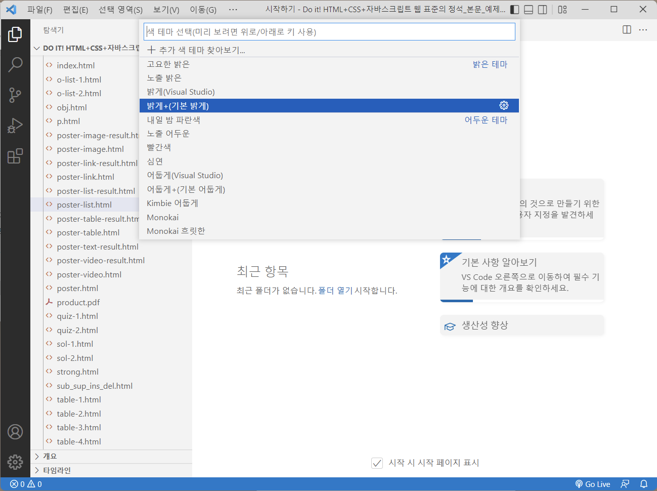 - 원하는 색 테마로 변경 (사진은 밝게+(기본밝게)임)