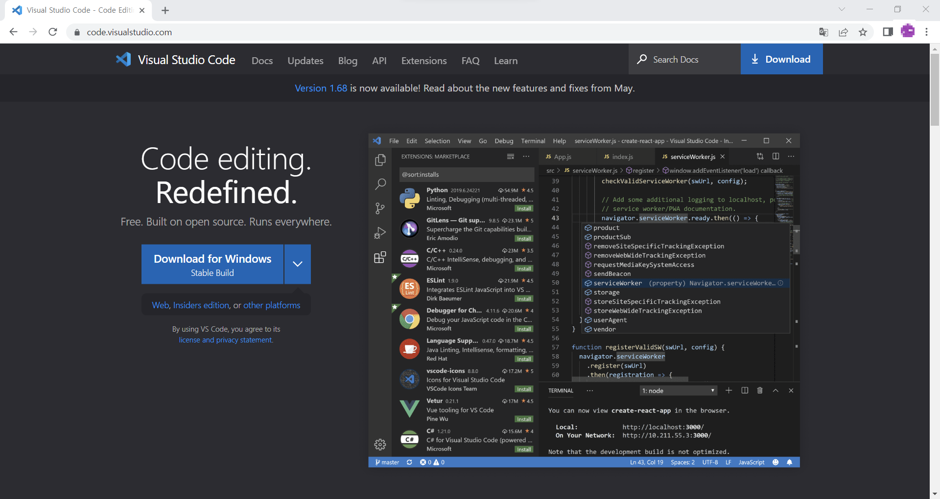 - 비주얼 코드 스튜디오 홈페이지(code.visualstudio.com)에 접속
